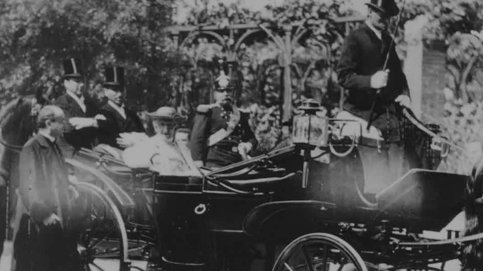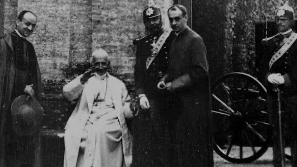 Pope Leo XIII Leaving Carriage and Being Ushered Into Garden
