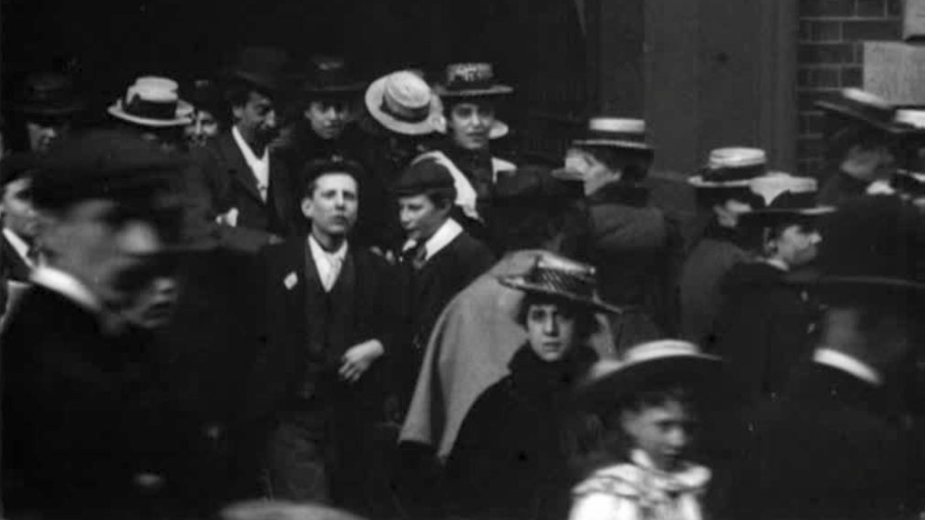 Workpeople and Girls Leaving Thos. Adams Factory, Nottingham (1900)